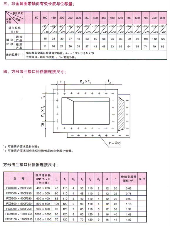 表示方形非金屬補償器,長期工作≤100℃,內壁為4500×4000mm,法蘭連接,產品長度400mm