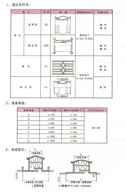 織物補償器(纖維織物補償器)類型:①復式 ②角向型 ③方型