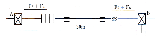 例:一碳鋼管路,公稱通徑500mm,工作壓力0.6MPa;介質溫度350°C ,環境_溫度-10°C,安裝溫度為20°C,管線長如圖,疲勞破壞次數要求3000次。要安裝一外壓補償器,試計算補償器對支座的作用力。